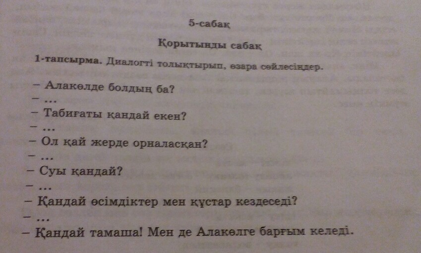 - Алаколде болдын ба? (перевод- Был в Алаколе?)