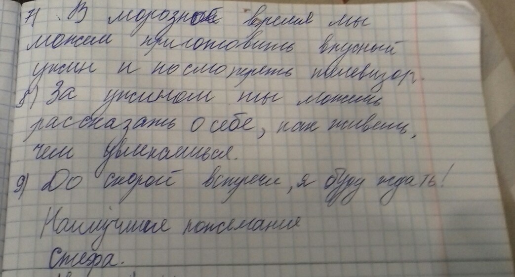 В последнем имя написала не так, наверное, не смогла почерк разобрать, но, думаю, имя Вы сами сможете написать, просто воспользовавшись транскрипцией русских букв на английском языке.