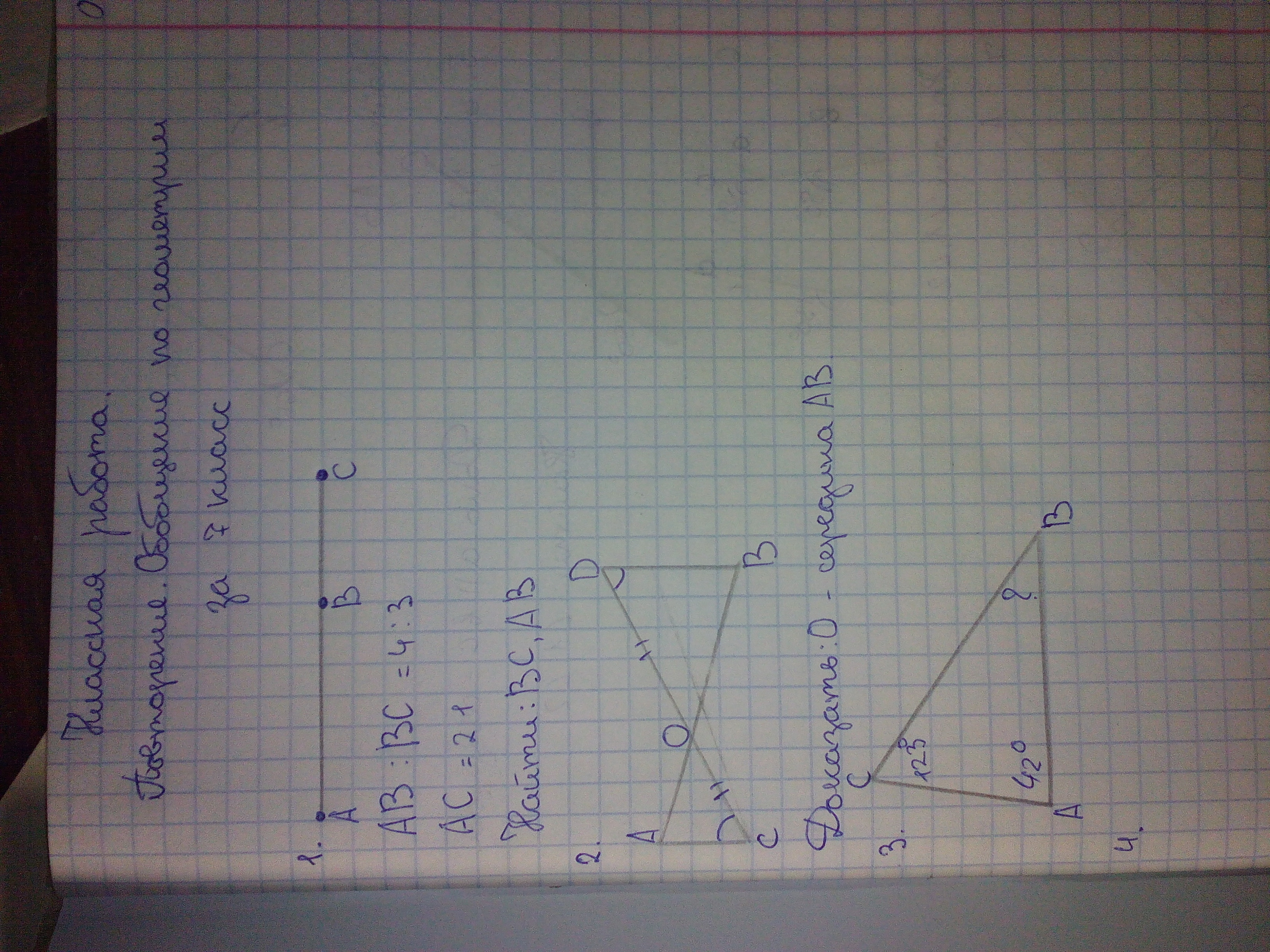 треугольник АОС = треугольнику ВОД (по стороне ОС=ОД, и двум прилегующим углам ∠С=∠Д, ∠АОС = ∠ВОД)