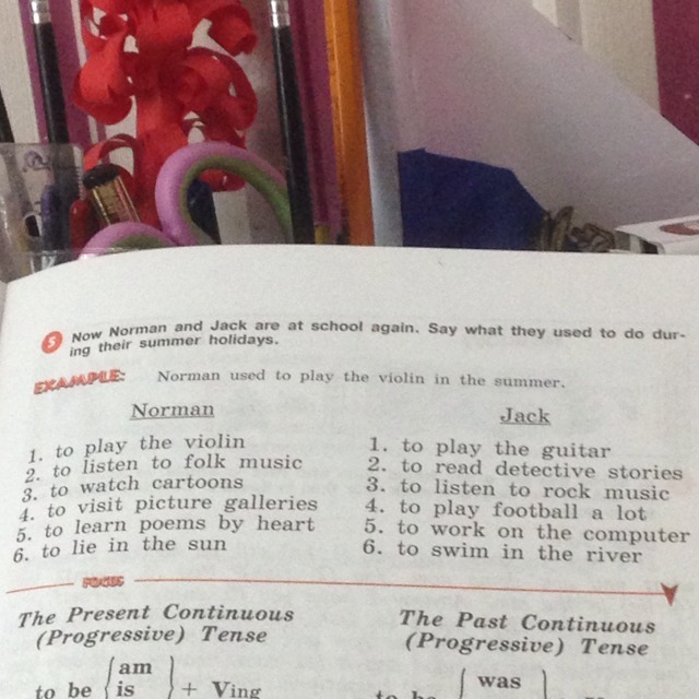 Jack used to play the guitar; used to read detective stories; used to listen to rock music; used to play football a lot; used to work; used to swim
