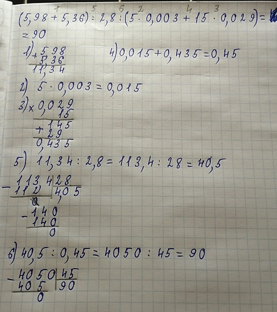 Помогите. (5,98+5,36) : 2,8 : ( 5 * 0,003 + 15 * 0,029)