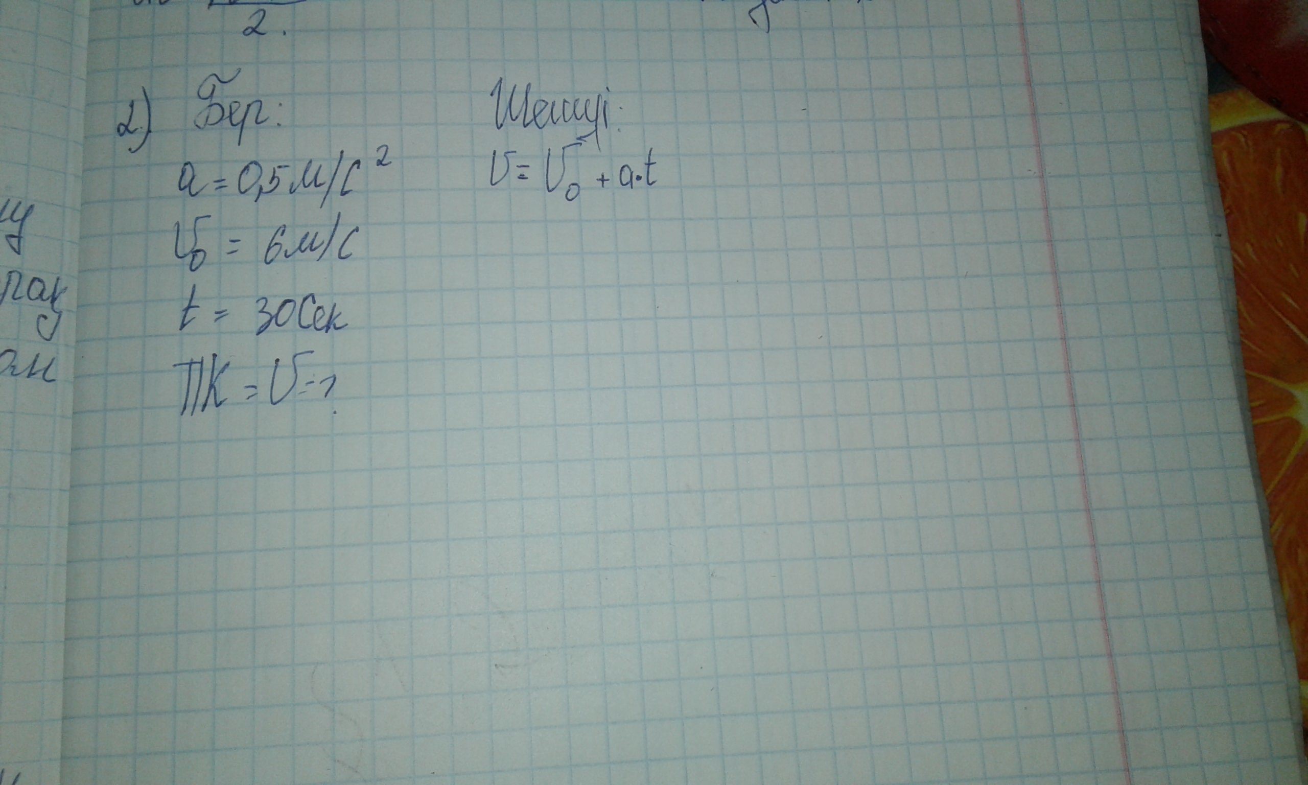 a= 0.5 м/с² V= V0+at V= 6+ 0.5*30 = 21 м/с