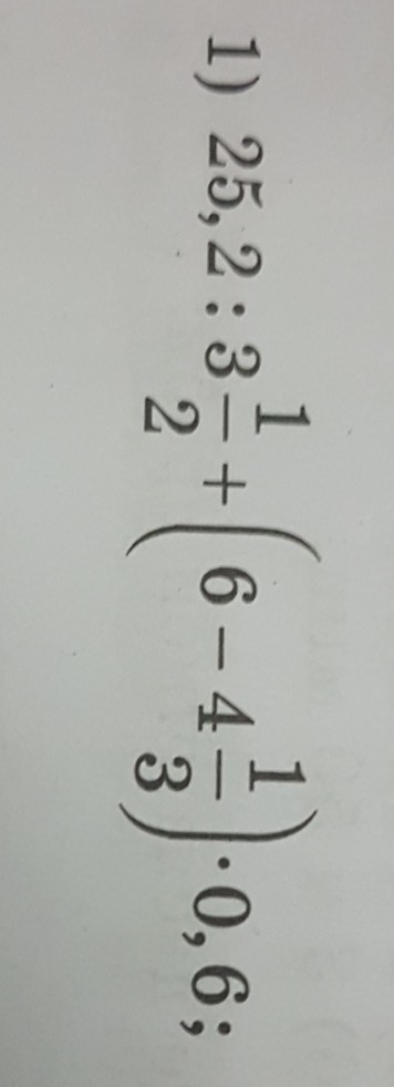 25,2÷3цел.1/2+(6-4цел.1/3)×0,6