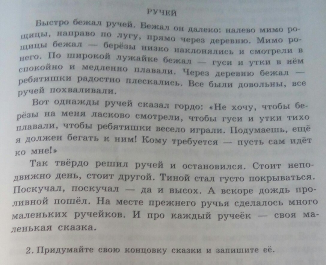 мораль: как ручеёк нужен детям , березкам , гусям и т.д. так и они все нужны ручейку
