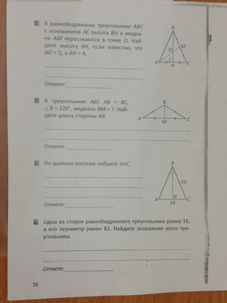 Задание 6: Допустим, треугольник АВС. Сторона АВ=ВС=16