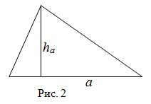 Чтобы найти площадь треугольника, нужно сторону умножить на высоту, проведенную к этой стороне (рис.), и полученное произведение поделить на два.То есть если сторона треугольника равна , а длина высоты, проведенной к этой стороне - , то имеет место формула: