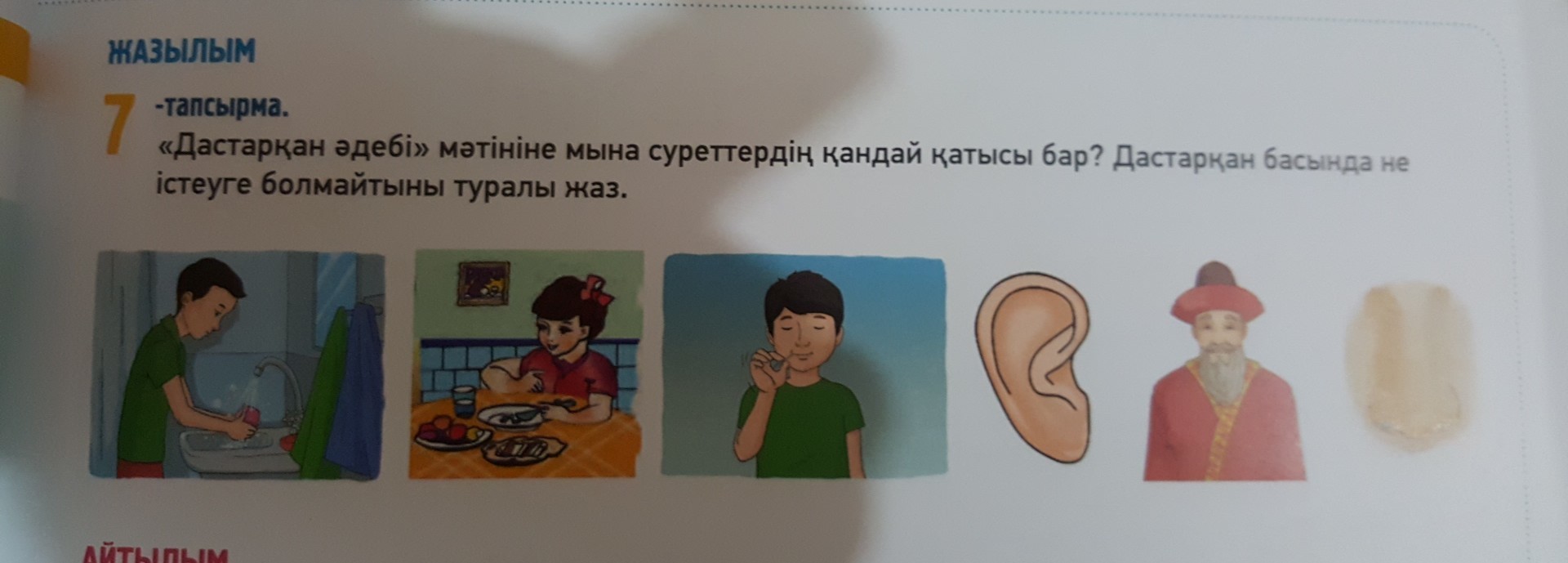 Дастарxанның басына келер алдында қолды жуу керек. Тамақты оң қолмен жеу керек. Дастарxанның басында тіс шұқуға болмайды. Дастарxанға тамақ келгенде үлкен адам тамақты бастайды.