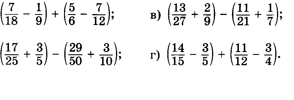 1.(7/18-1/9)+(5/6-7/12)=(7/18-2/18)+(10/12-7/12)=5/18+3/12=10/36+6/36=16/36