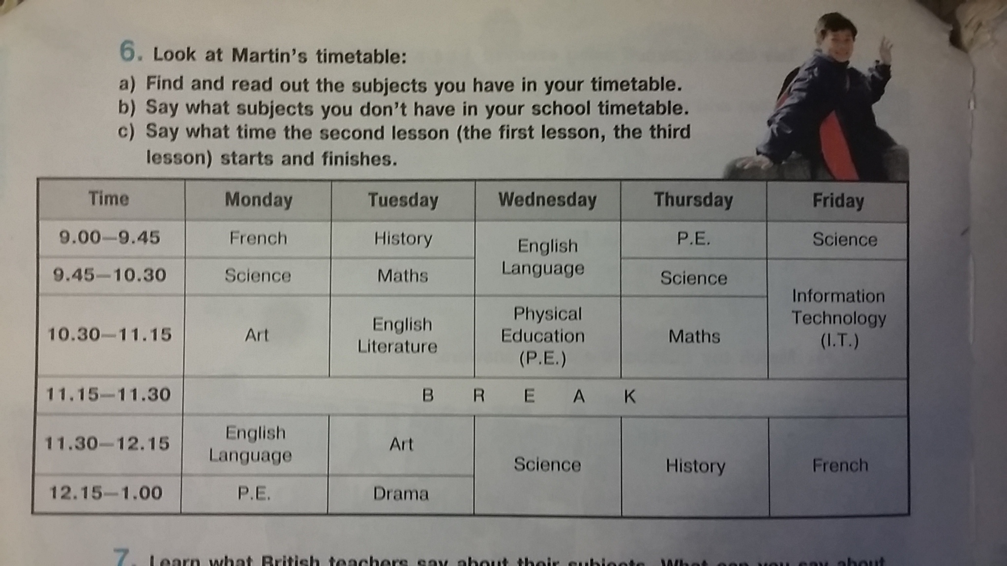 1.Выпиши из этого расписания предметы,которые есть у тебя в школе, в твоем расписании уроков.