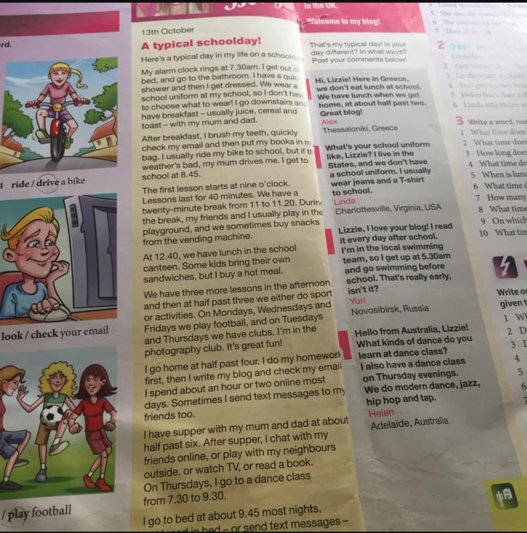 3 The blog is about a normal day during the WEEK.