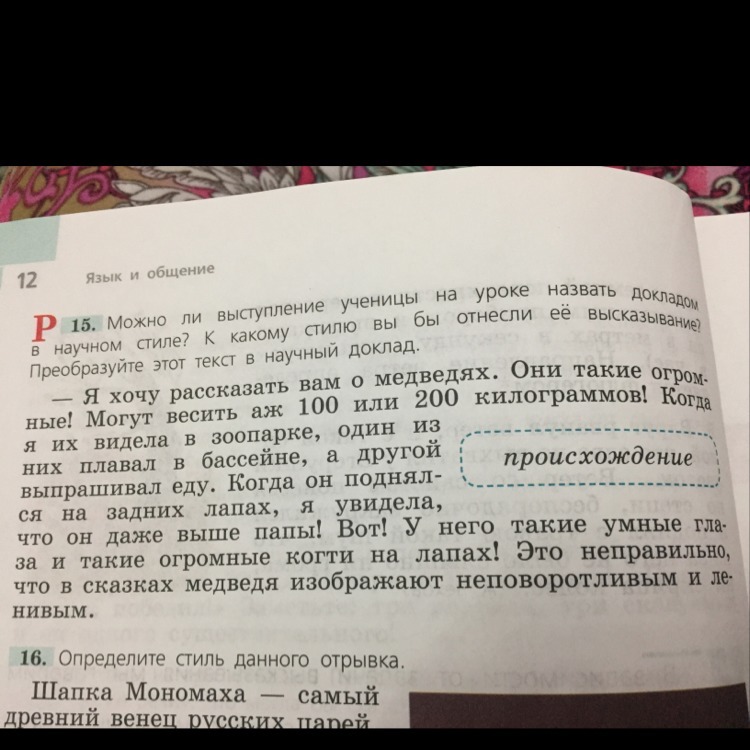 Можно ли выступление ученицы на уроке назвать докладом в научном стиле?К какому стилю вы бы отнесли её высказывание?Переобразуйте этот текст в научный доклад