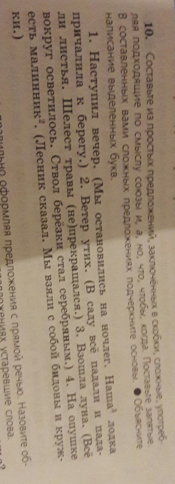1)Наступил вечер, поэтому наша лодка причалила к берегу, и мы остановились на ночлег.