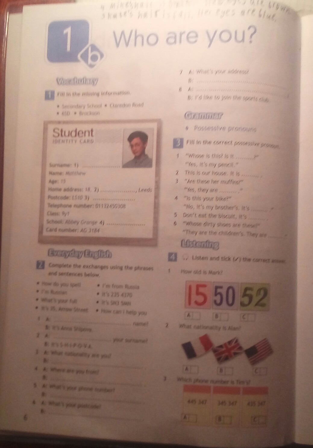 1 yours, 2 ours, 3 hers, 4 his, 5 mine.6 theirs