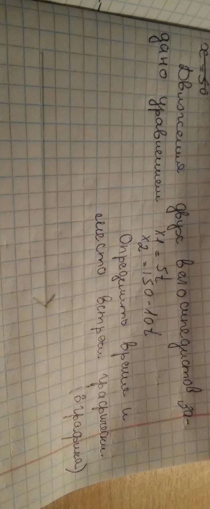 Подставляем в х1 (можно и в х2), находим место встречи х1=5*10=50м
