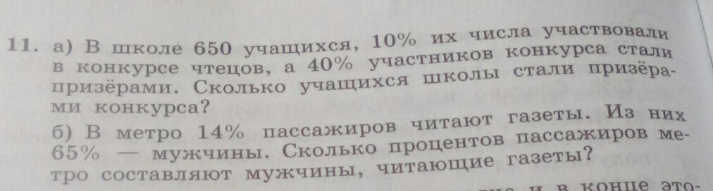 Из 650 на конкурс пошла 1/10 школы=65. Из них 2/5(40%) стали призерами. 65/5*2=26