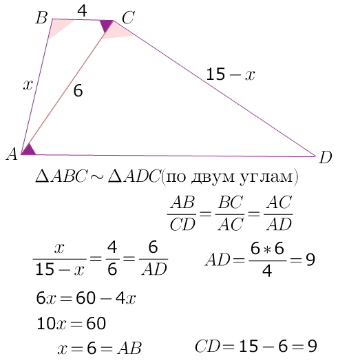 диагональ трапеции -это секущая при параллельных основаниях трапеции, значит накрест лежащие углы будут равны...
