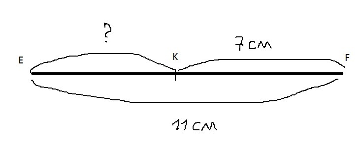 Как решить. Длина отрезка EF равна 11 см. На отрезке отметили точку K так, что длина отрезка KF равна 7 см. Найдите длину отрезка EK