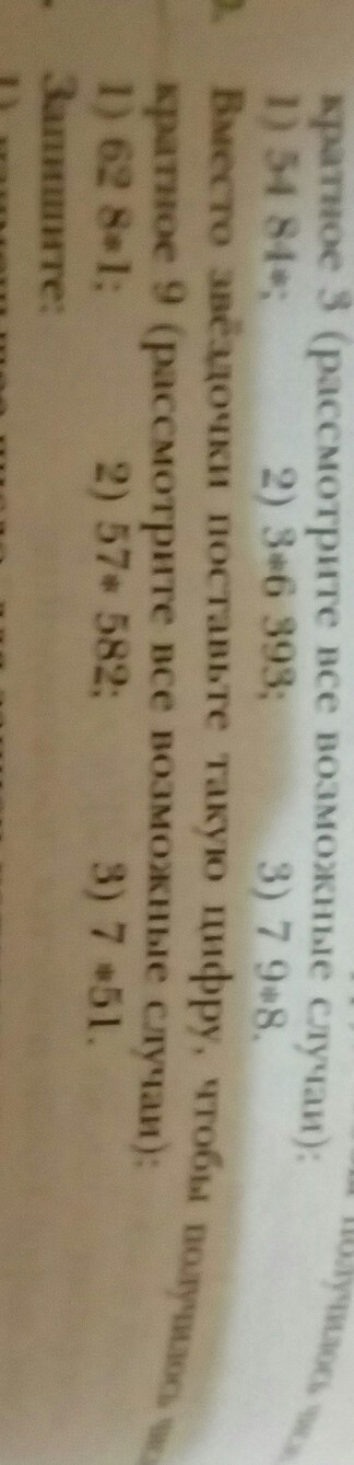 Вместо звёздочки поставьте такую цифру,что бы получилось число,кратное 9 (рассмотрите все возможные варианты)