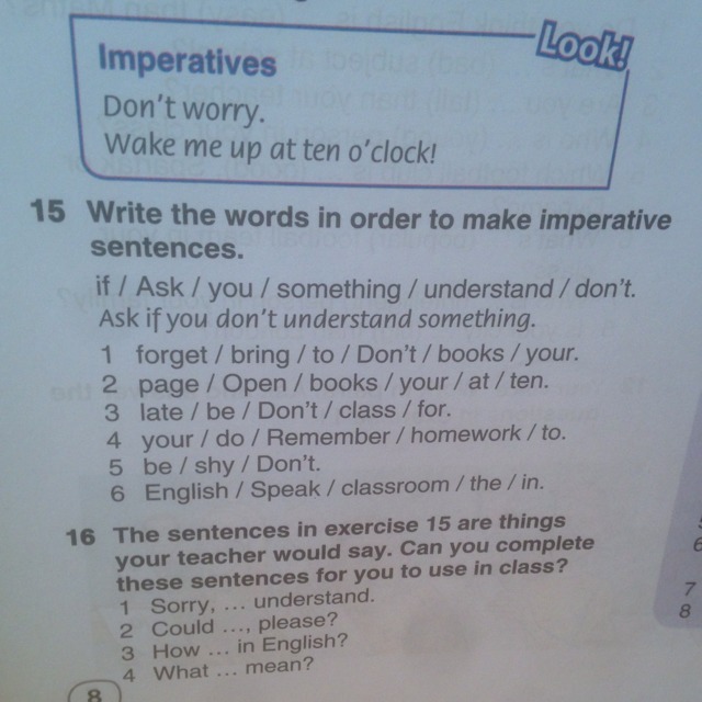 7 Speak English in the classroom. 1 Don't forget to bring your books.