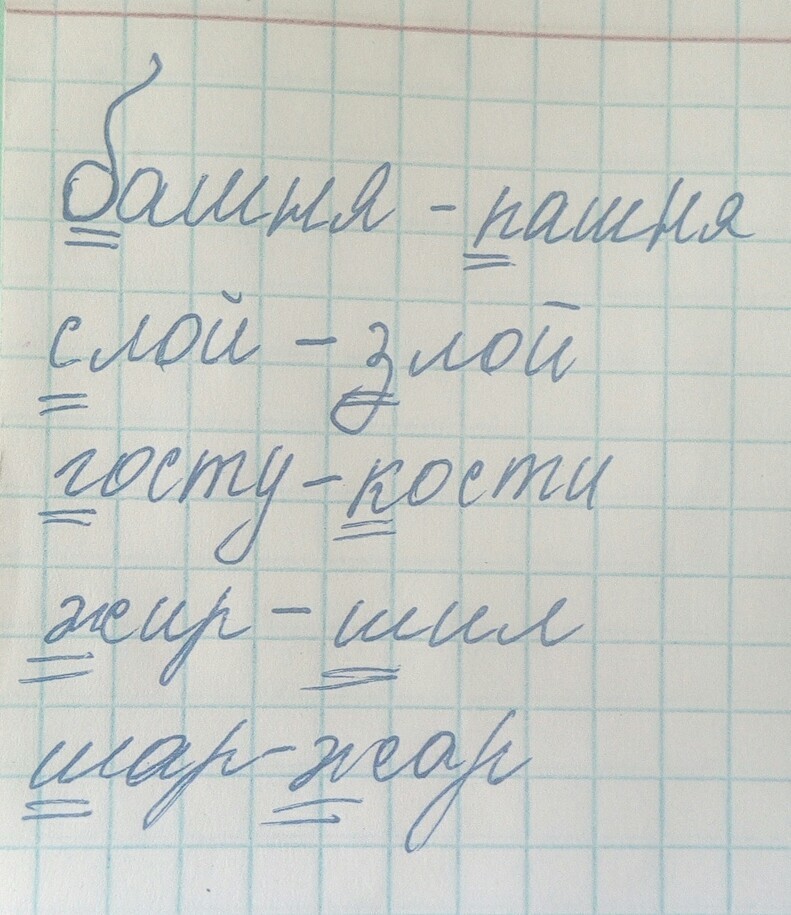 к каждому слову подбери слово, которое отличается от него только одним звуком
