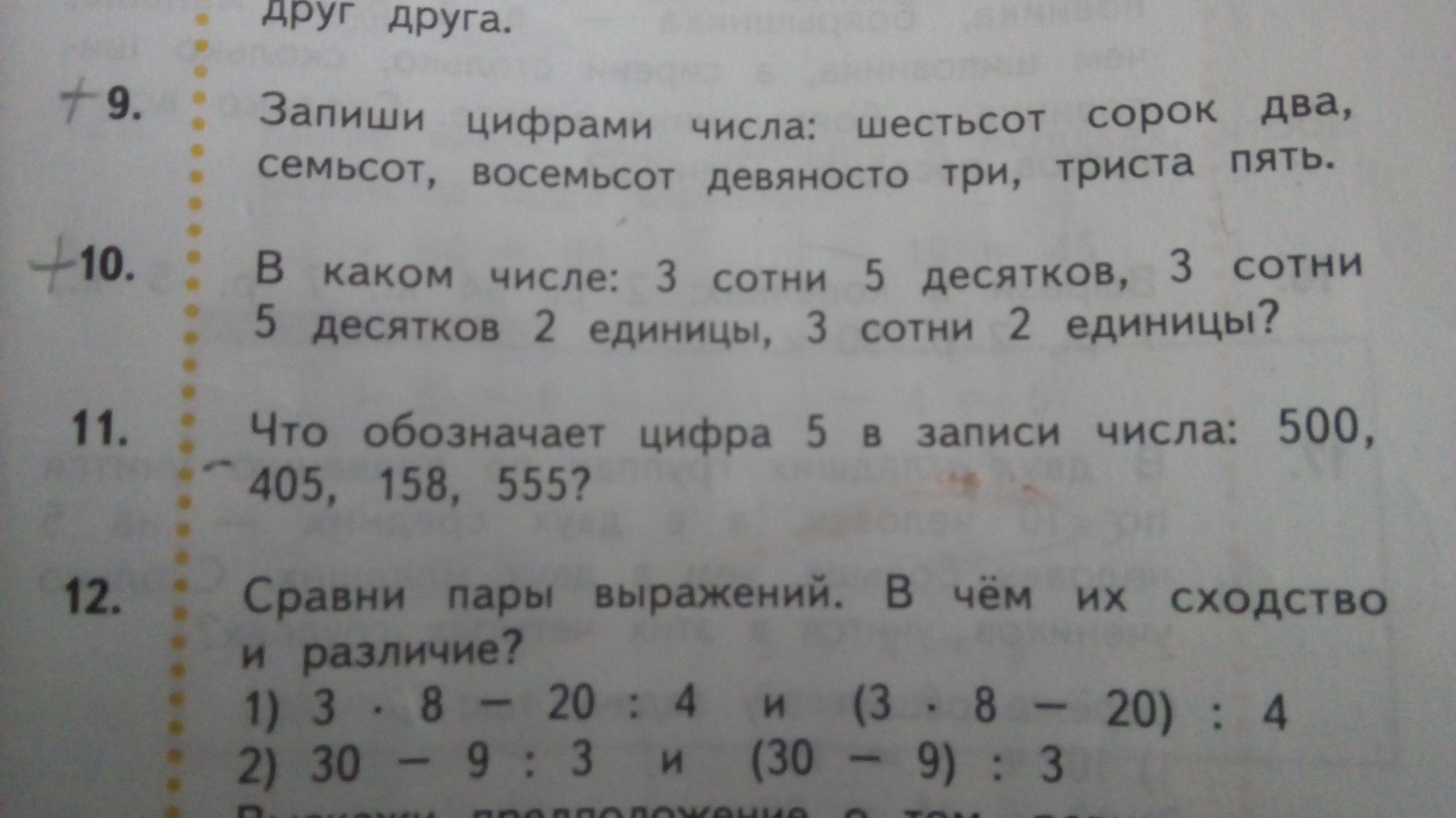 Вот всё элементарно! 1 сотня- 100, 2 сотни- 200 и тд. 1 десяток- 10, 2 десятка- 20 и тд, 1 единица- 1, 2 единицы- 2! Это чтоб ты понял как это делается! А вот решение!