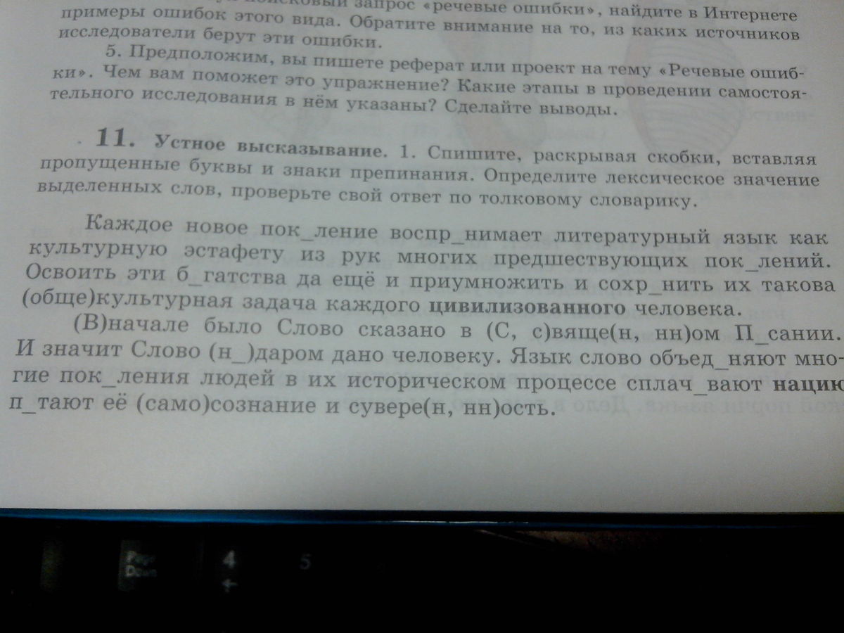 (В)начале было Слово сказано в (С,с)свяще(н,нн)ом П_сании.И значит Слово (н_)даром дано человеку.Язык слово объед_няют многие пок_ления людей в их историческом процессе сплач_вают нацию п_тают её (само)сознание и сувере(н,нн)ость.