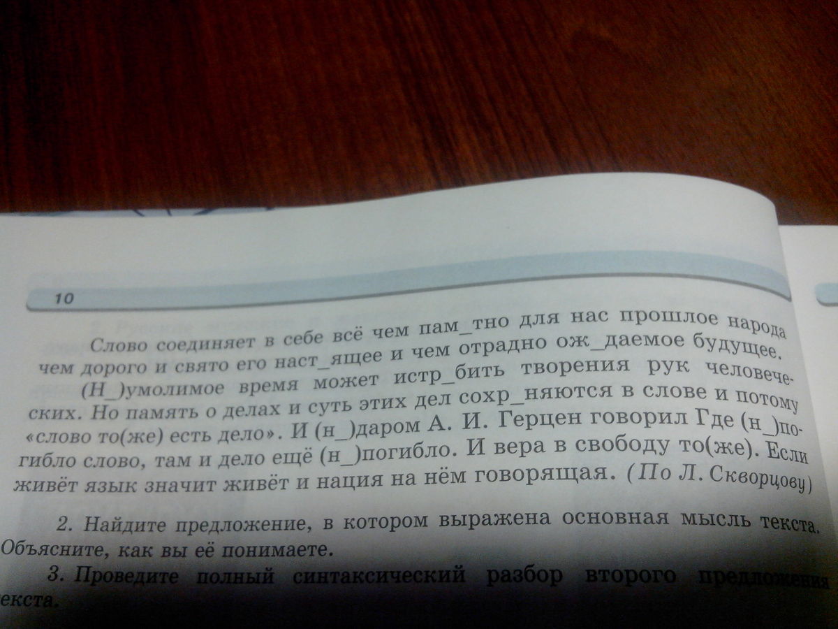 (Н_)умолимое время может истр_бить творения рук человеческих. Но память о делах и суть этих дел сохр_няются в слове и потому "слово то(же) есть дело". И (н_)даром А.И.Герцен говорил Где (н_)погибло слово там и дело ещё (н_)погибло.И вера в свободу то(же).Если живёт язык значит живёт и нация на нём говорящая.