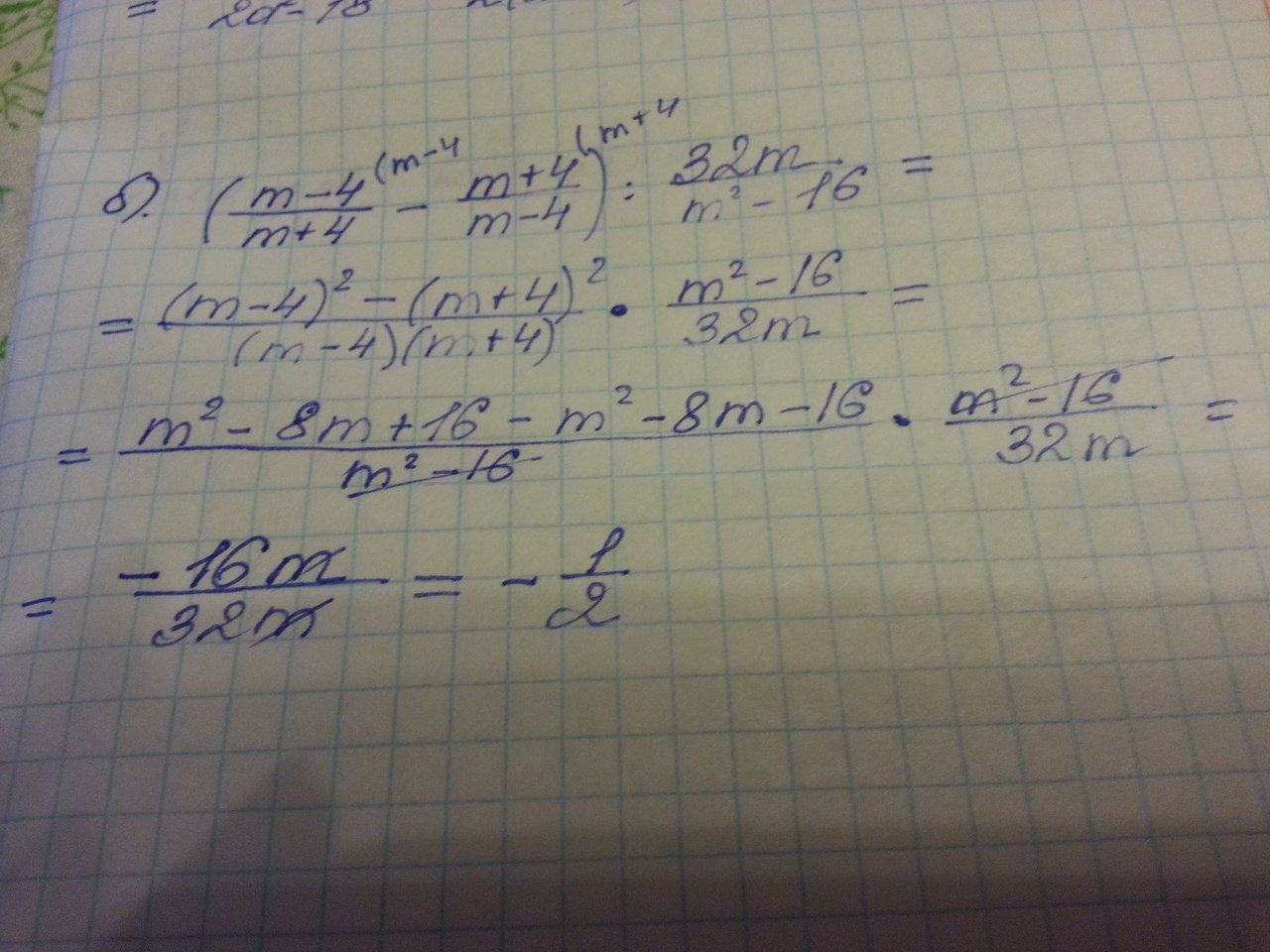 2)(((m-4)*(m-4)-(m+4)*(m+4))/(m^2-16))/(32m/(m^2-16))=((m^2-4m-4m+16-m^2-4m-4m-16)/(m^2-16))/(32m/(m^2-16))=(-16m*(m^2-16))/(m^2-16)*32m)=-0,5