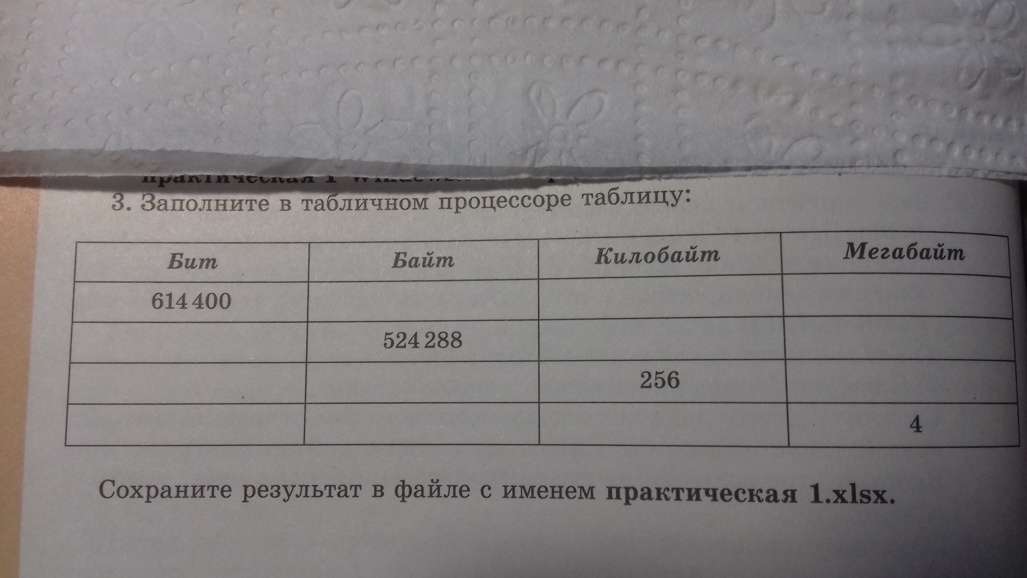 614400 Бит=76 800 байт=75 Кб=0,0732 Мб и т. д. (см. ниже).