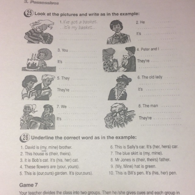 Look at the pictures and write as in the example: Underline the correct word as in the example: