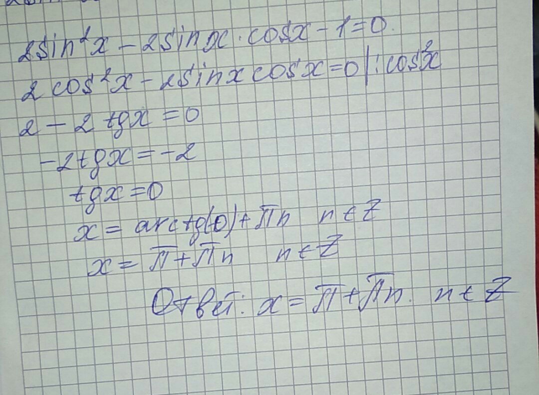 2sin²X - 2sinXcosX=1 ⇔sin²X - 2sinXcosX-cos²X=0⇔ tg²X -2tgX -1 =0