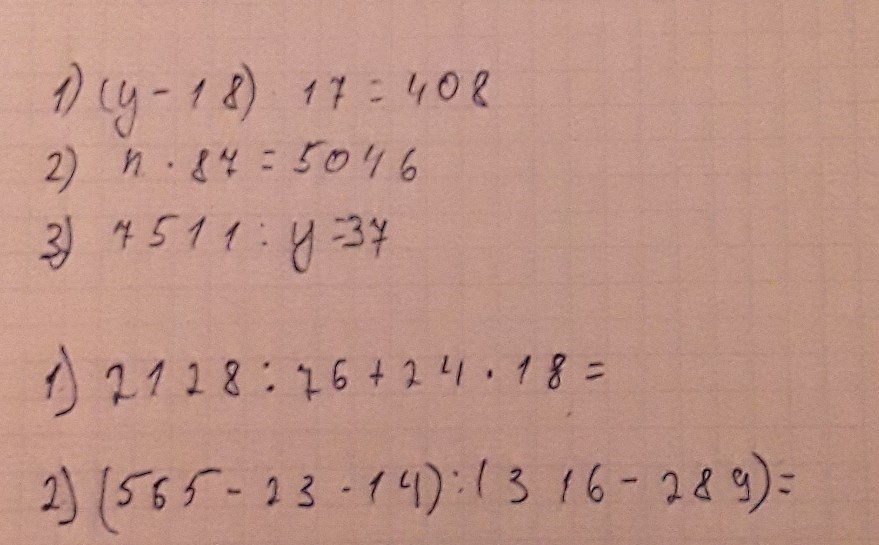 (y-18)=408÷17 n=5046÷87 y=7511÷37