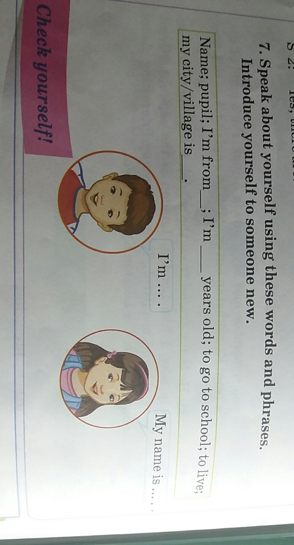 Нужно написать ваше имя и фамилию на английском, где вы живете, сколько лет, ходите в школу, где живёте в городе или деревне и все это на английском