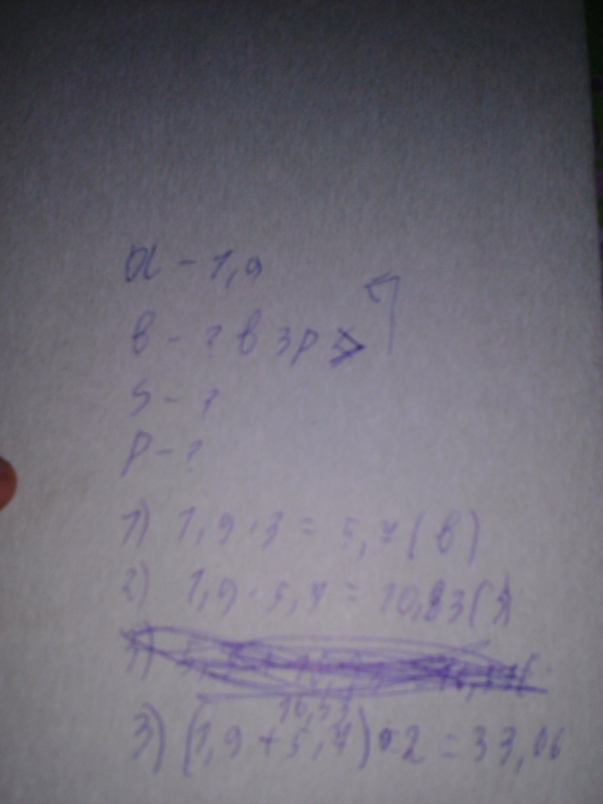 Вычислите площадь и периметр прямоугольника, если его ширина 1,9 дм, а длина в три раза больше. Помогите пожалуйста!!!