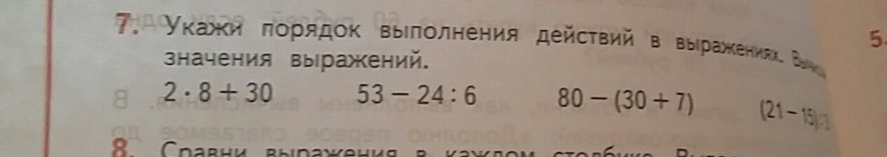 Укажи порядок выполнения действий в выражениях. Вычисли значения выражений