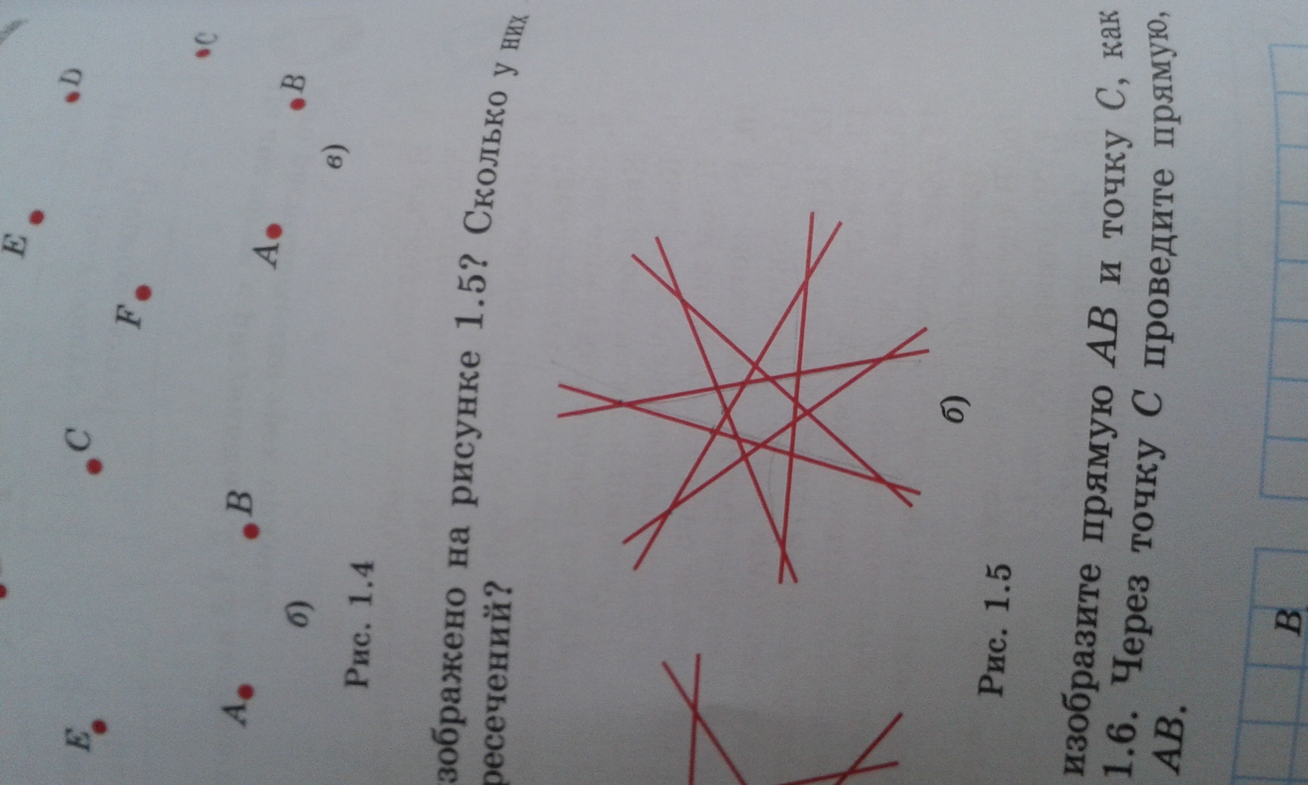 помогите пожалуйста ))) задание по геометрии ) 7 класс ) Крч , здесь надо посчитать сколько прямых линий изображено и точек пересечения ) Заранее спасибо )