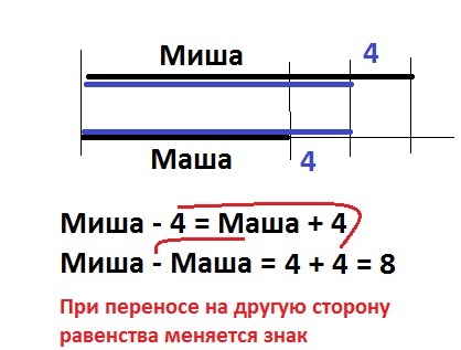 Когда Миша отдал Маши четыре конфеты то у них стало конфет поровну насколько больше конфет было у Миши чем у Маши нарисую схему она поможет тебе ответь на вопрос задачи