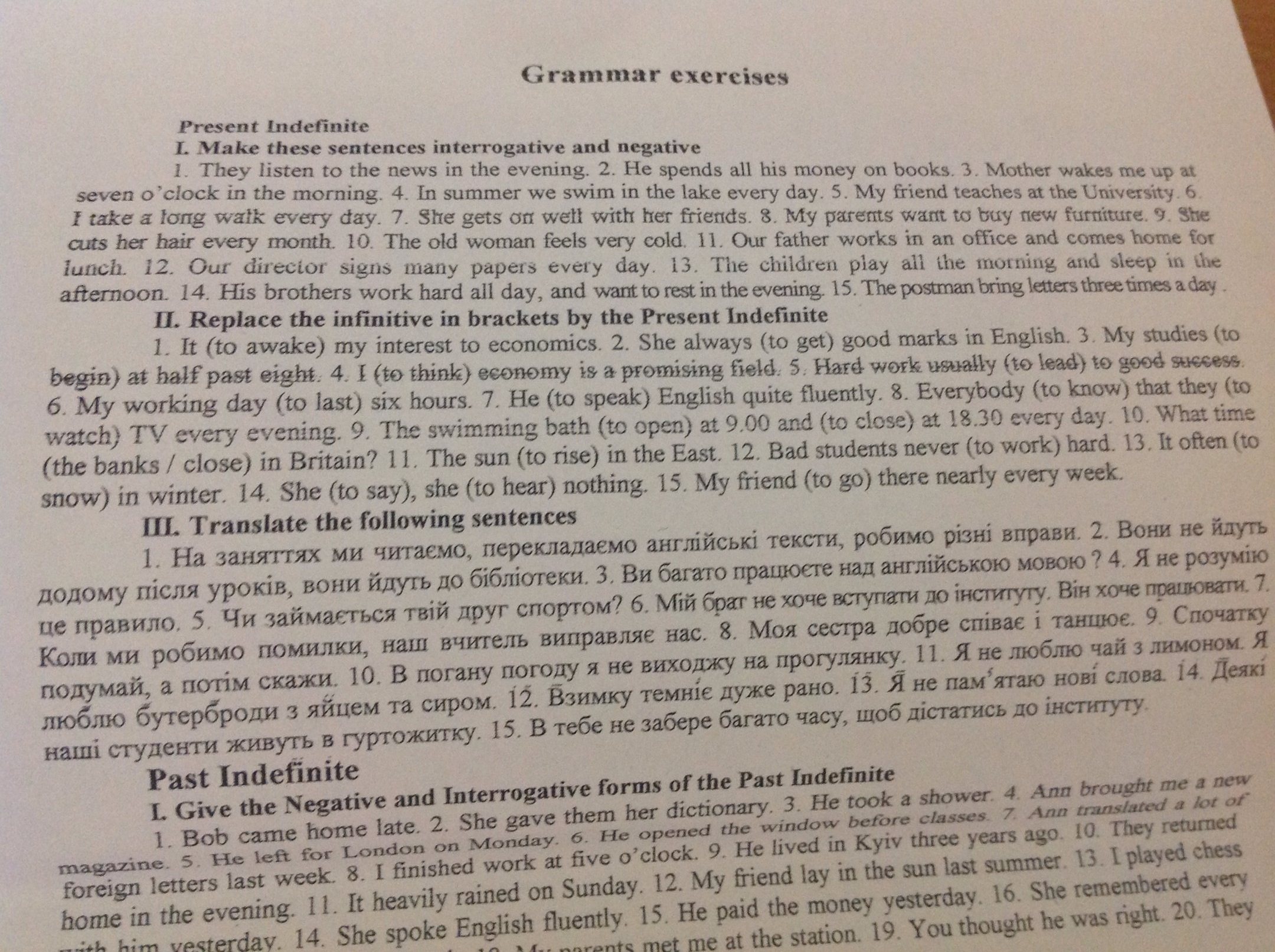 It awakes myinterest to economics. She always gets good marks in English. Ну это я так для примера, как делать это задание. Вообще его делать легко. Present Indefinite довольно лёгкое время.