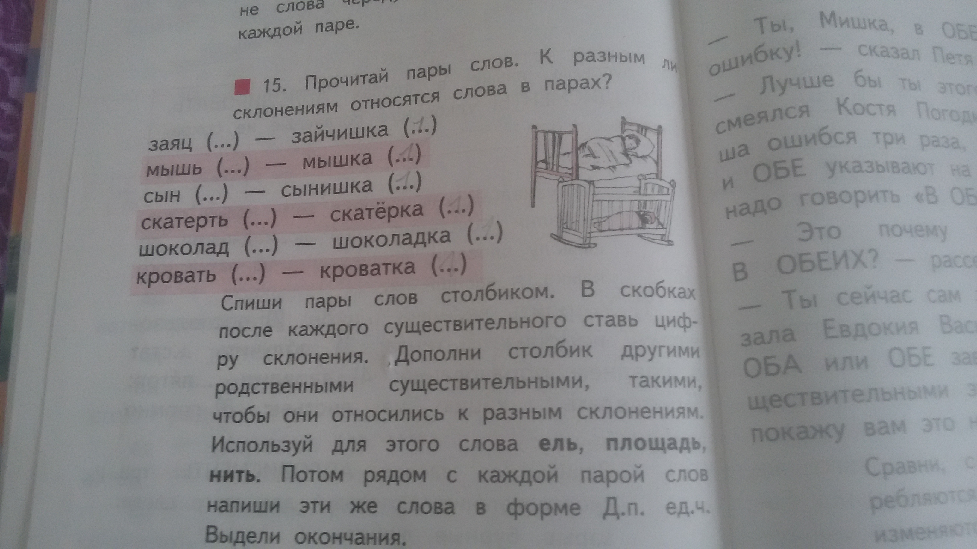 заяц-2,мышь-3, сын-2, скатерть-3, шоколад- 2, кровать- 3