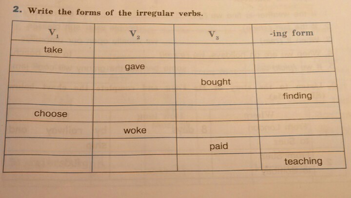 took taken takinggive given givingbuy bought buyingfind found foundchose chosen choosingwake woken wakingpay paid payingteach taught taught