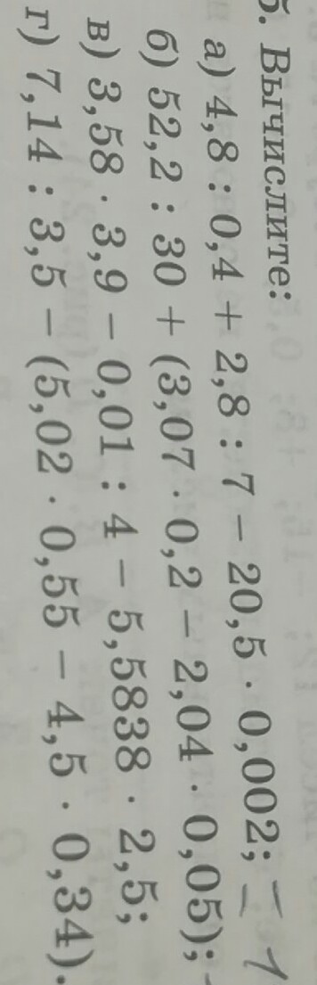4,8 / 0,4 + 2,8/7 - 20,5*0,002= 1,2+0,4-0,041=1,559
