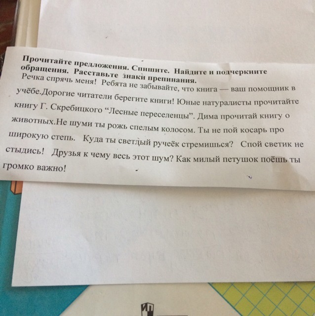 РЕЧКА, спрячь меня! РЕБЯТА, не забывайте что книга-- ваш помощник в учёбе. ДОРОГИЕ ЧИТАТЕЛИ, берегите книги! ЮНЫЕ НАТУРАЛИСТЫ, прочитайте книгу Г. Скребицкого "Лесные переселенцы". ДИМА, почитайкнигу о животных. Не шуми ты, РОЖЬ, спелым колосом. Ты не пой, КОСАРЬ, про широкую степь. Куда ты, СВЕТЛЫЙ РУЧЕЁК, стремишься? Спой, СВЕТИК, не стыдись! ДРУЗЬЯ, к чему весь этот шум? Как, МИЛЫЙ ПЕТУШОК, поёшь ты громко, важно!