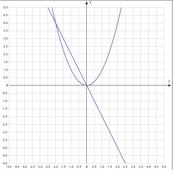 Точки пересечения графиков (0;0) и (-2;4)