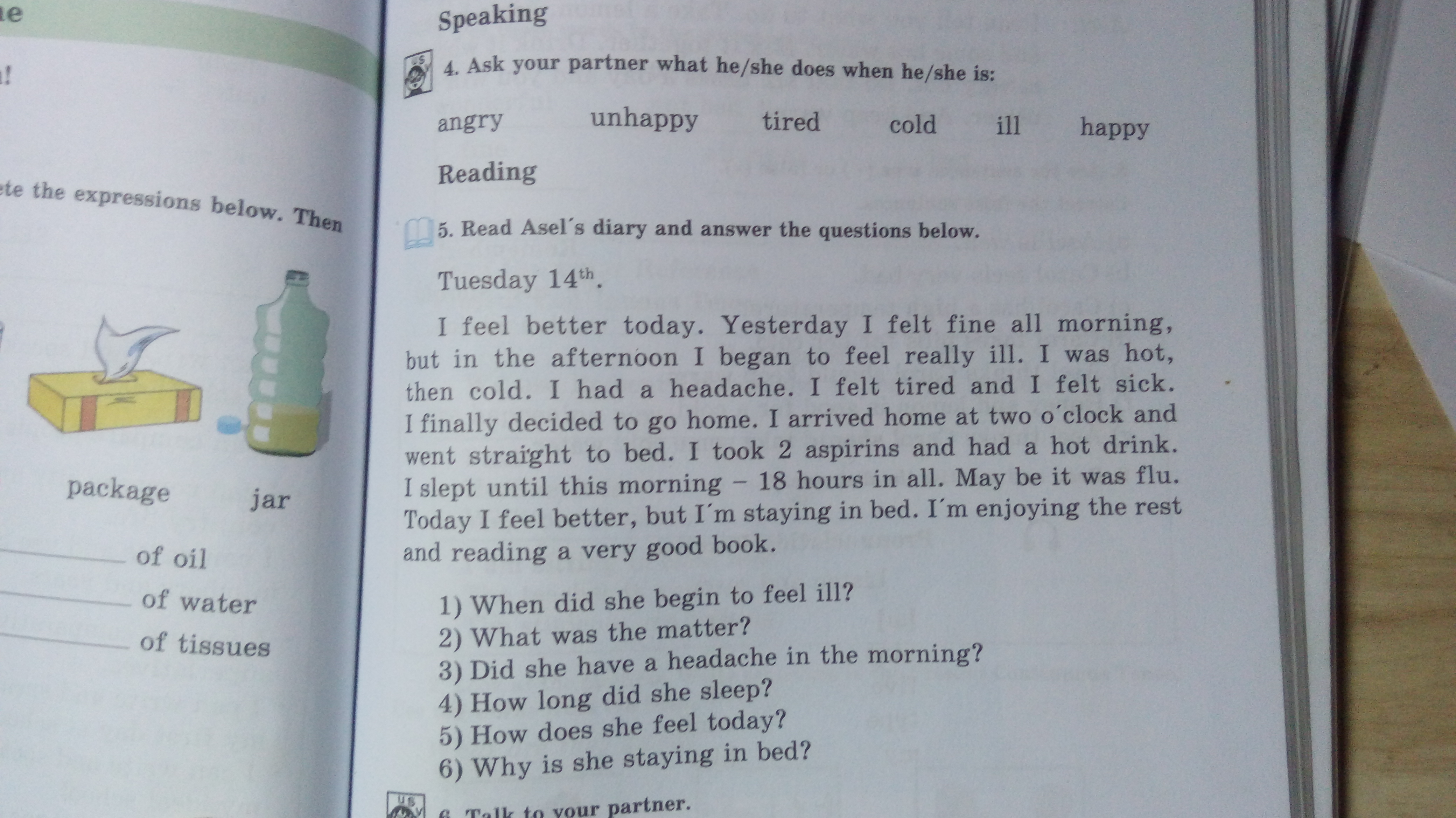 Сегодня я чувствую себя лучше.Вчера я чувствовал себя хорошо утром,но к обеду начал чувствовать больным.Сначала мне было холодно,потом жарко.У меня болела голова.Я чувствовал себя уставшим и слабым .Наконец я решил пойти домой.Я пришел домой в два часа и лег в кровать. Я принял две таблетки аспирина и выпил горячей воды. Я проспал до утра-всего 18 часов.Может быть это был грипп.Сегодня я чувствую себя лучше,но остаюсь в кровати.Я наслаждаюсь отдыхом и чтением очень хорошей книгой.