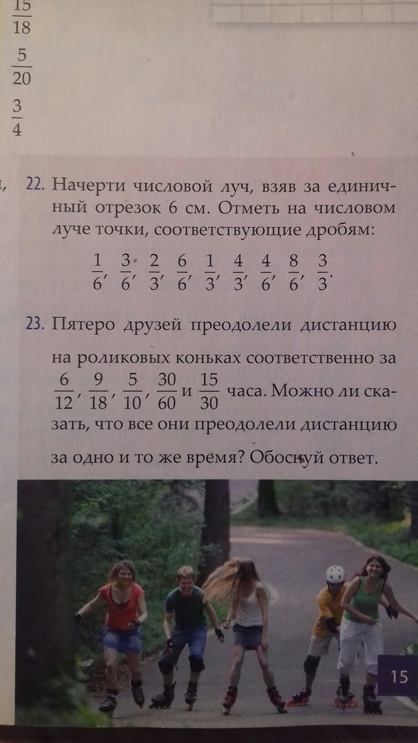23 задача. 6/12 = 30/60; 9/18=90/180=30/60; 5/10=30/60; 30/60; 15/30= 30/60. Они все пробежали за одно и тоже время