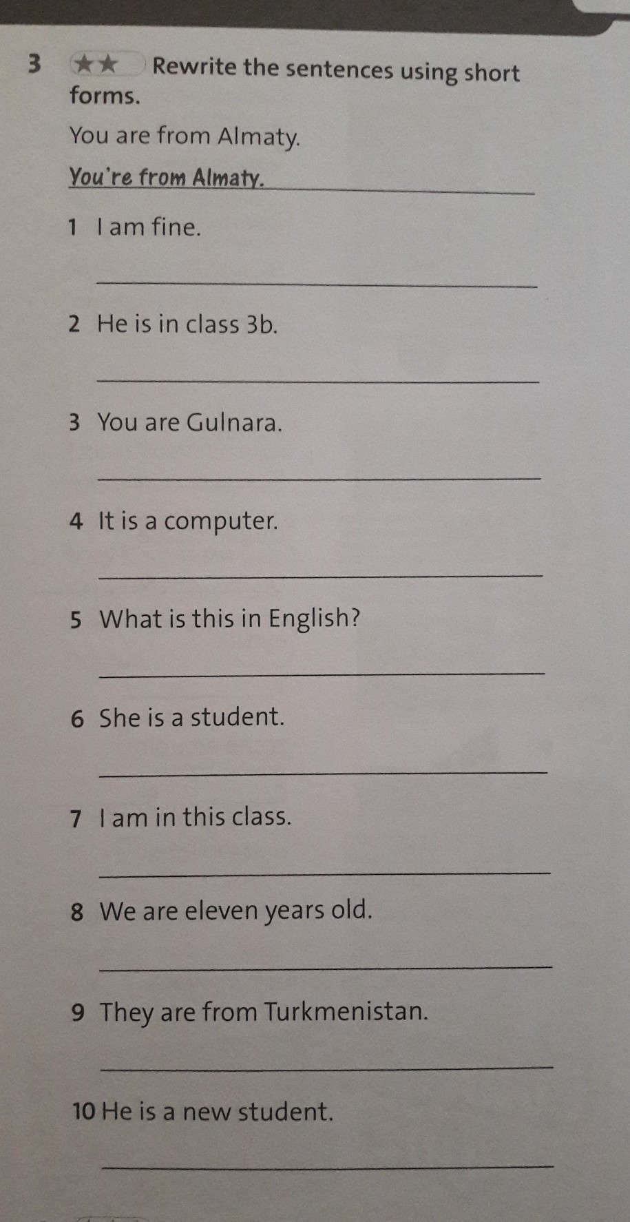 1. I'm 2. He's 3. you're 4. it's 5. what's 6. she's 7. i'm 8. we're 9. they're 10. he's