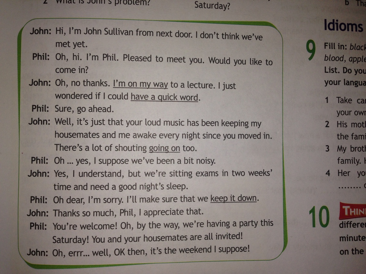 Срочно нужна помощь. Составить небольшой диалог на тему "проблема с соседями"