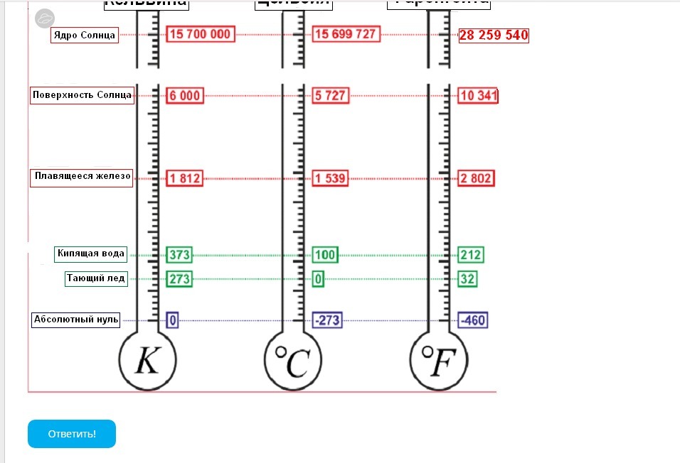 Термометры со шкалами Фаренгейта и Кельвина показывают одну и ту же температуру при