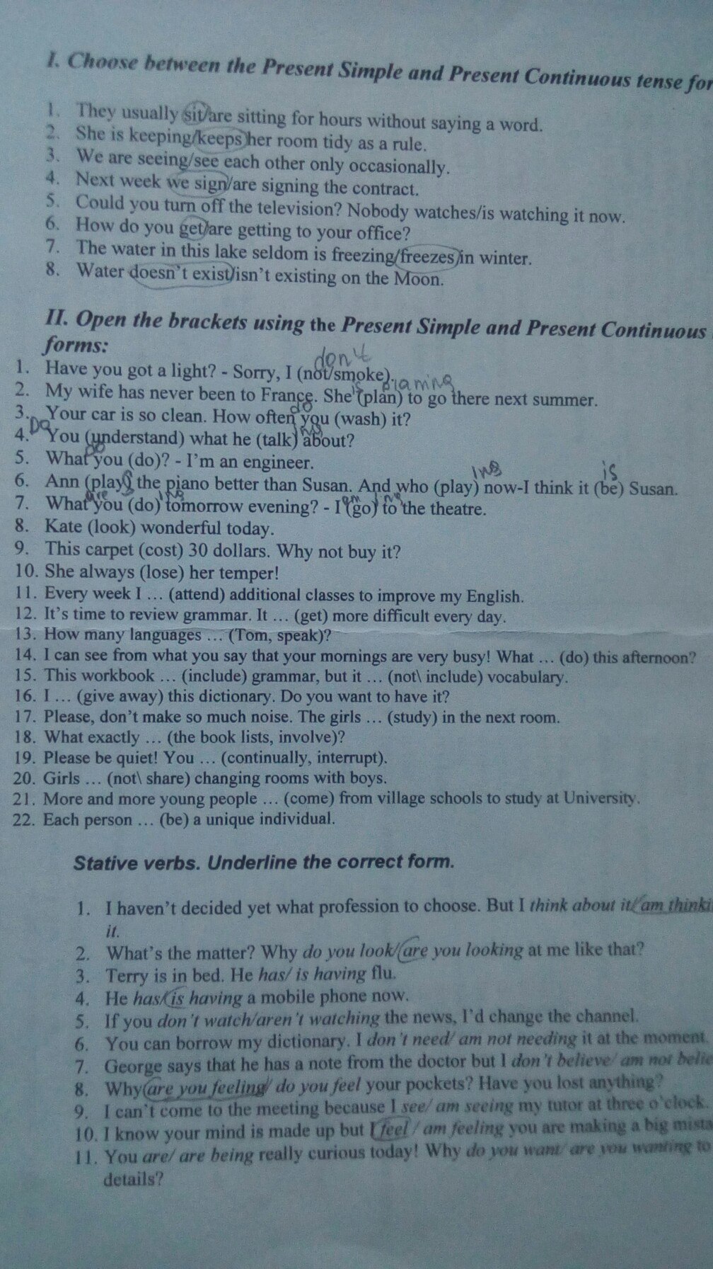 Open the brackets using the Present Simple or the Present Continuous tense-forms