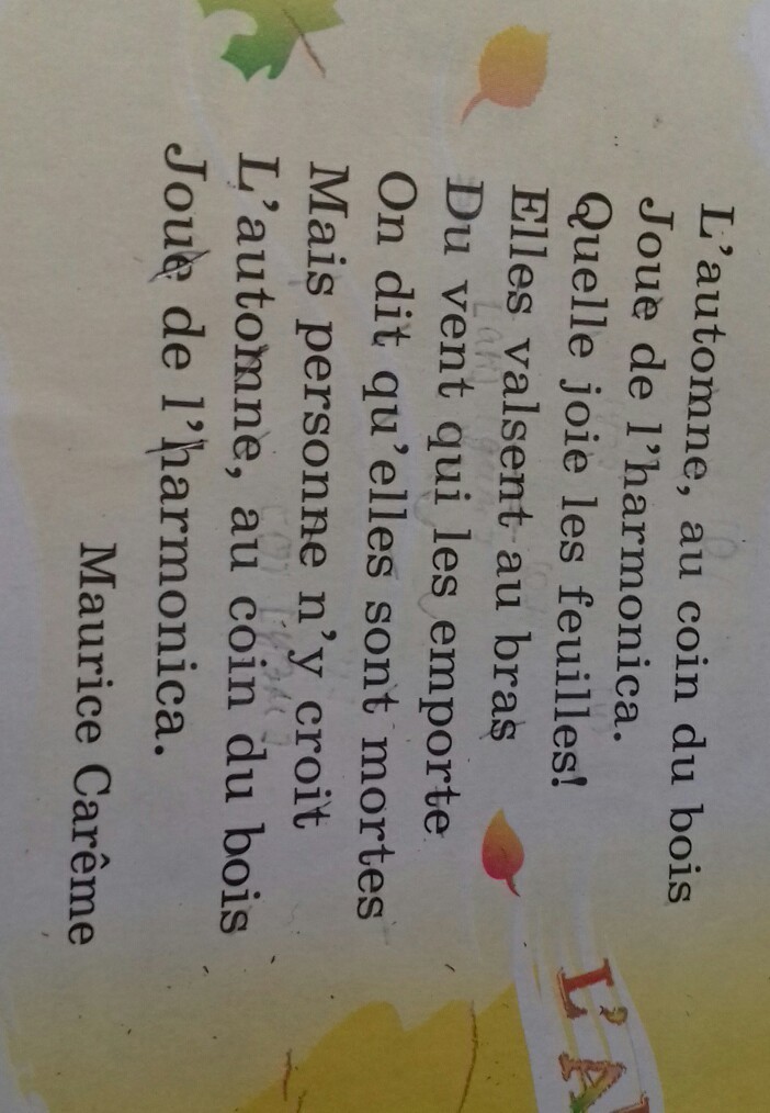Осень, на углу леса Игра на гармонике. Какая радость оставляет! Они вальсируют на руке Ветер, который их несет. Говорят, что они мертвы. Но никто не верит. Осень на углу леса. Игра на гармонике. Морис Кареме